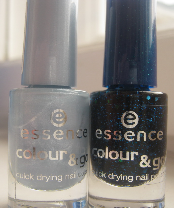 Наконец-то руки дошли до лаков Essence, выбор пал на голубой крем с наношиммером Sure Azure и синий глиттер - клон Deborah Lippmann Across The Universe - Blue Addicted. Вот они красавцы:
