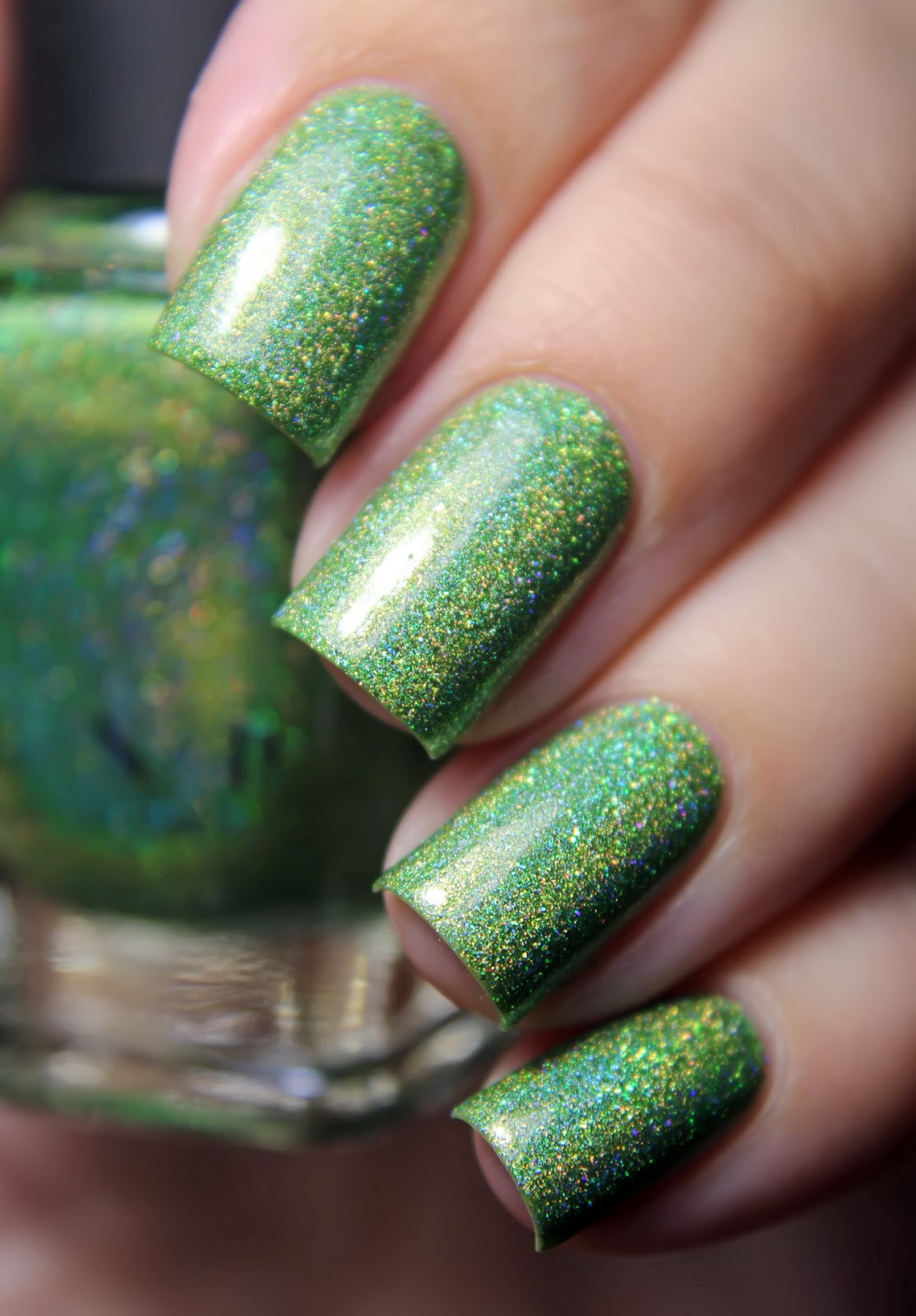 Мне очень нравится сочетание фиолетового и зеленого, в маникюре выше я это продемонстрировала, поэтому я взяла зеленую слюду ILNP Supernova, которую я потом покажу отдельно (она просто восхитительно отливает розовым, что в данном случае передать не удалось) и накрасила в один слой поверх Walking Home.