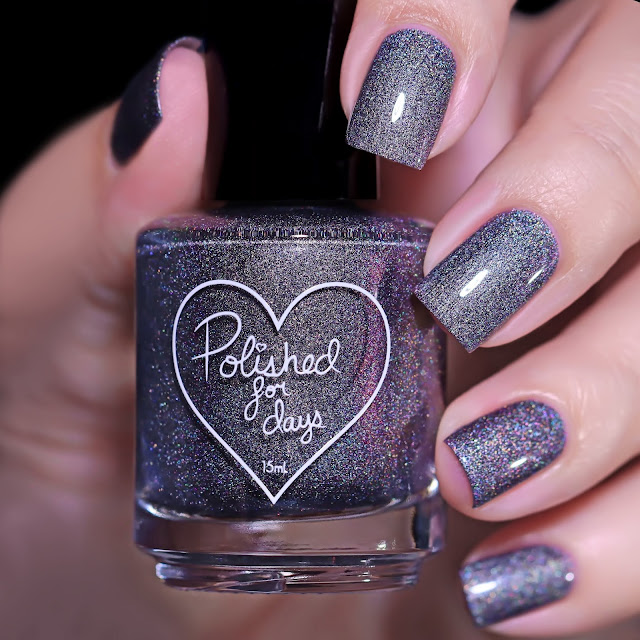 Equinox is a charcoal grey jelly with holo and red to black shifting shimmer. Below three coats plus top coat.